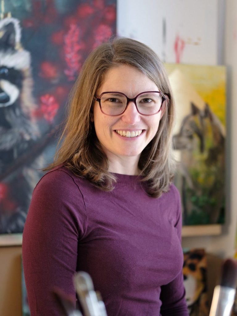 Im Zentrum ihrer Arbeit steht Beziehung: die Beziehung zu sich selbst, zum Gegenüber und zu dem Raum dazwischen. Menschen und Tiere erscheinen in ihren Bildern nicht als Motive, sondern als Ausdruck innerer Haltungen. In Blicken, Körperhaltungen und im stillen Raum um die Figur wird sichtbar, wie eine innere Ausrichtung Form annimmt. Ihre Arbeiten richten den Fokus auf das, was innerlich trägt und Präsenz erzeugt.