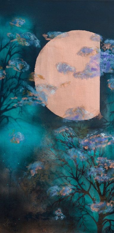 Umgesetzt wird dies in einem offenen, schichtweisen Arbeitsprozess. Am Anfang steht eine innere Haltung oder Stimmung, die sich allmählich verdichtet, bevor sie auf die Leinwand übertragen wird. Das Bild entwickelt sich frei und in Etappen, bis das Motiv jene Klarheit und Präsenz erreicht, die für sie stimmig ist.